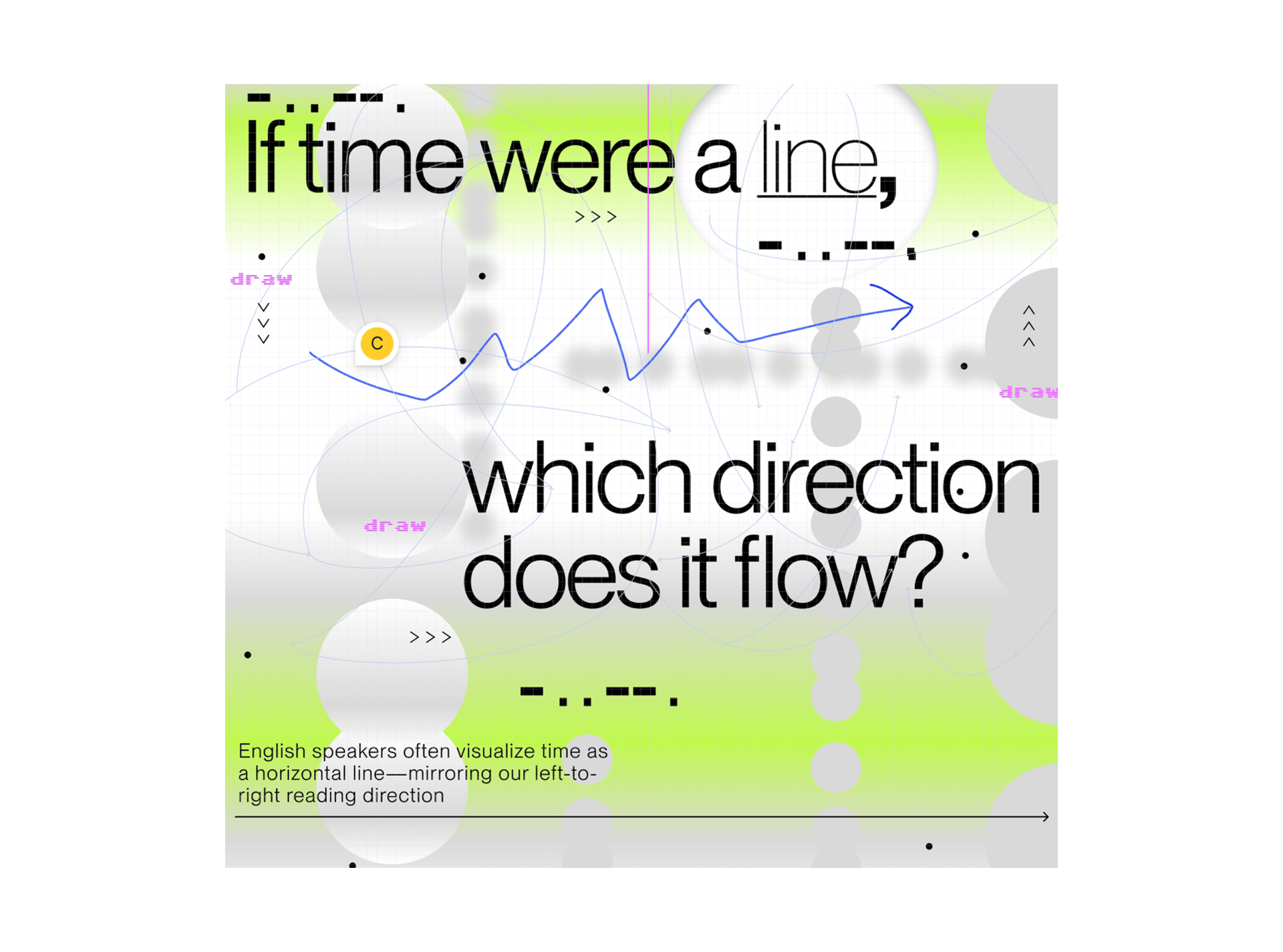 The site is unapologetically non-linear โ less a page to read, more a type-driven playground. Sections two and three are the centrepiece: text glides left-to-right, reverses right-to-left, then moves up, down, forward, back. It's built around 2D design creating a 3D illusion โ the kind that makes you feel pulled into another dimension with each scroll.
